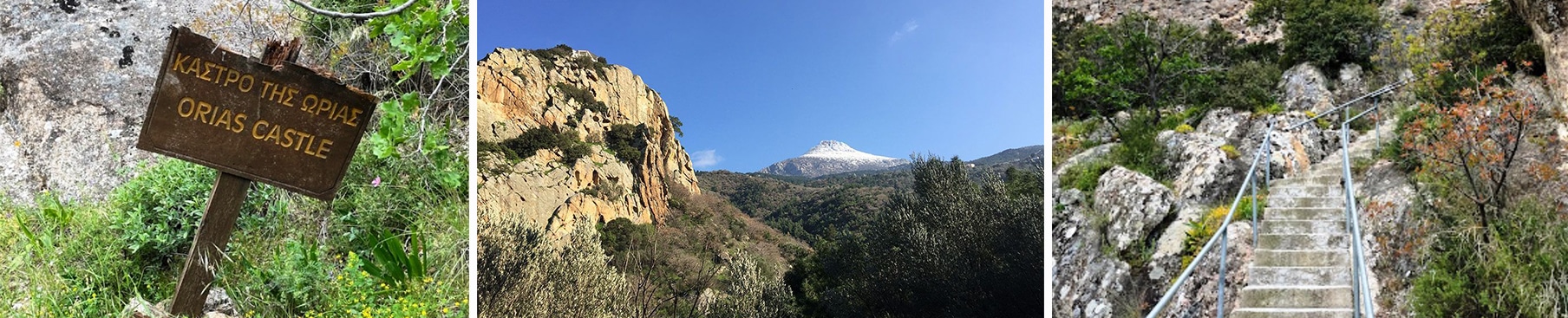Πληροφορίες : Το Κάστρο της Ωριάς δεσπόζει πάνω από το κατάφυτο φαράγγι των Καμπιών. Είναι ένα χαρακτηριστικό μικρό μεσαιωνικό Βυζαντινό οχυρό, που εκμεταλλεύεται με εξαιρετική δεξιοτεχνία τη φυσική οχύρωση του βράχου. Σώζονται στοιχεία από την εξωτερική οχύρωση, όχι όμως και από τις εσωτερικές του εγκαταστάσεις. Πιθανολογείται ότι υπήρχε κάποιο κεντρικό κτίσμα, του οποίου τη θέση κατέλαβε αργότερα ο ναός της Αγίας Παρασκευής.