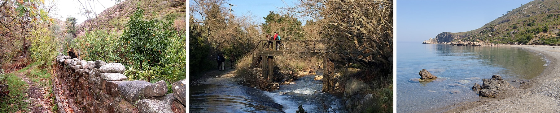 Περπατώντας δίπλα στα χωράφια με τα εσπεριδοειδή – Γεφύρι κοντά στην έξοδο του Φαραγγιού – Η παραλία των Καμπιών