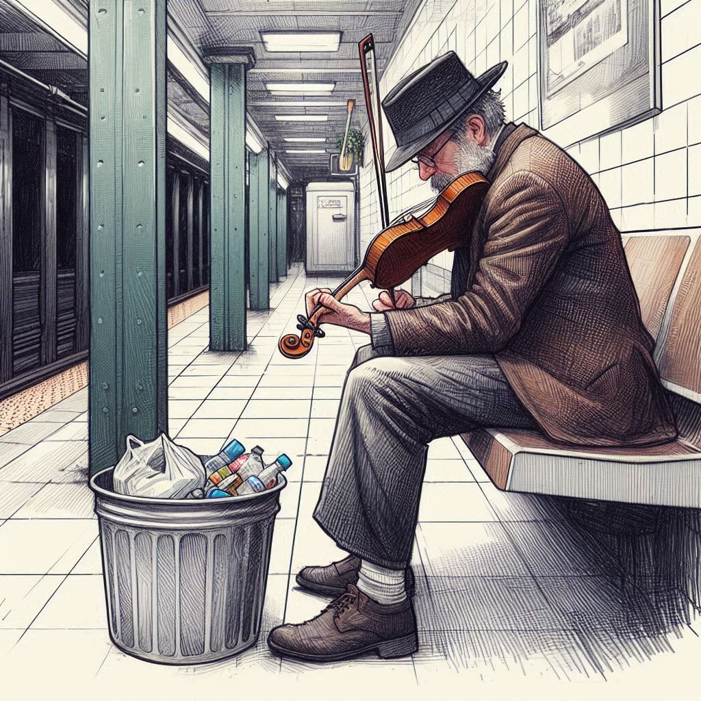 Κάποιο κρύο πρωινό του Ιανουαρίου του 2007, ένας άντρας κάθισε σε ένα κεντρικό σταθμό του μετρό, δίπλα σε έναν κάδο σκουπιδιών και ξεκίνησε να παίζει το βιολί του. Έπαιξε για περίπου 45 λεπτά. Κατά τη διάρκεια αυτών των 45 λεπτών, δεδομένου ότι ήταν ώρα αιχμής, πέρασαν από μπροστά του αρκετές χιλιάδες άνθρωποι, οι περισσότεροι πηγαίνοντας στη δουλειά τους.