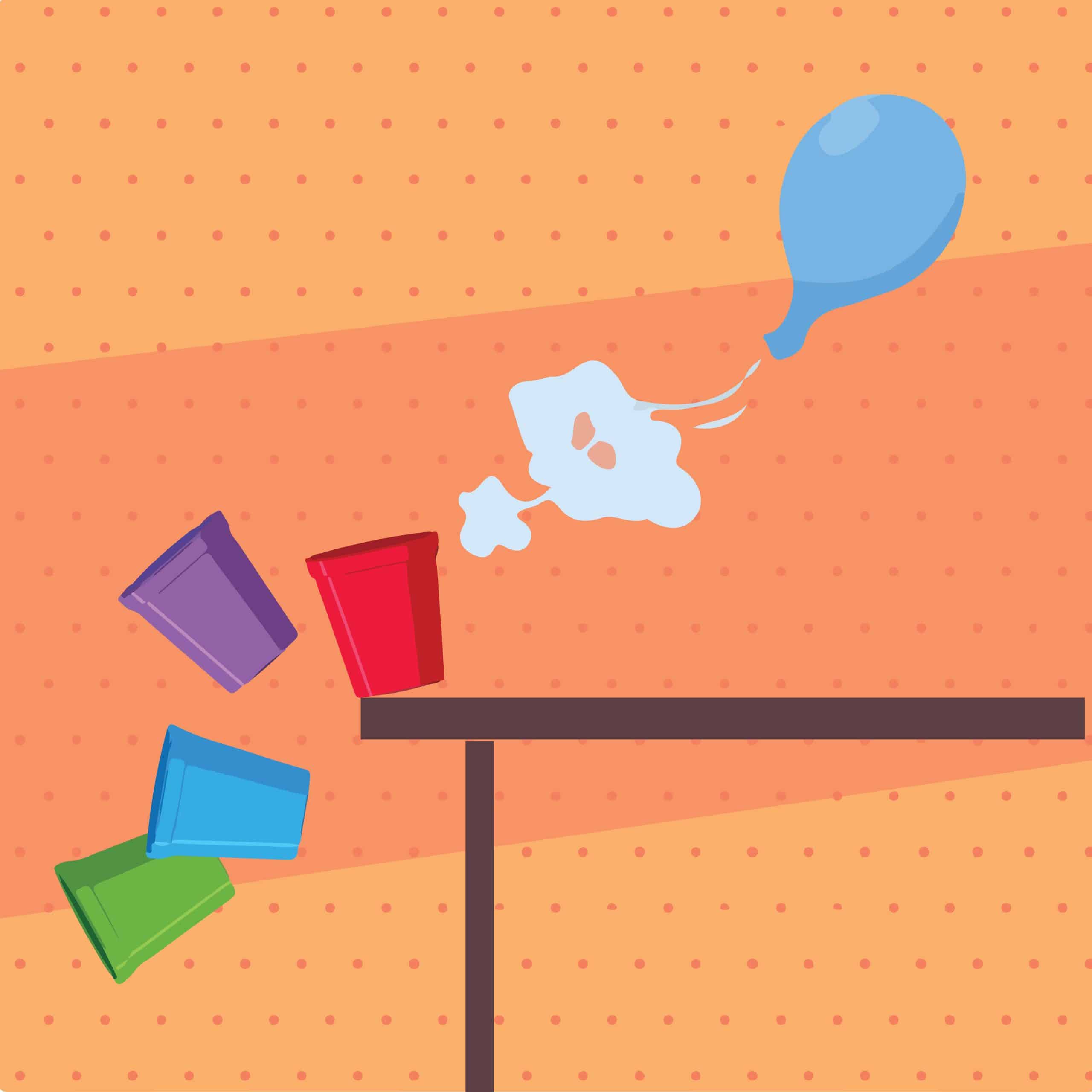 Περιγραφή: Στόχος του παιχνιδιού είναι κάθε πρόσκοπος να στρέψει τον αέρα που φυσά μέσα στο μπαλόνι του πάνω στα 20 πλαστικά ποτήρια, που είναι παρατεταγμένα στην άκρη ενός τραπεζιού και μαζί με τα υπόλοιπα παιδιά της Ενωμοτίας του να ρίξει κάτω τα ποτήρια. Όποια Ενωμοτία ρίξει πρώτη τα ποτήρια της είναι η νικήτρια. Παίζεται ωραία σε τραπεζαρία κατασκήνωσης.