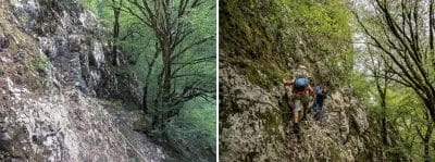 Το πρώτο μέρος του μονοπατιού απαιτεί αυξημένη προσοχή, μιας και το μονοπάτι, σε κάποια σημεία, κινείται μέσα στα βράχια της κοίτης ή περνάει από στενά σημεία στα οποία υπάρχει ασφάλεια με σχοινί.