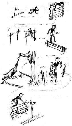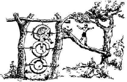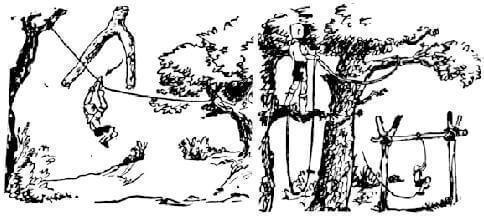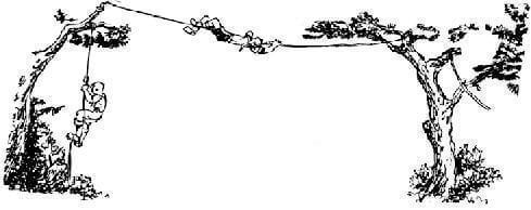 2) Ταρζάν: Δένουμε από ένα δέντρο ψηλά τη μία άκρη ενός σχοινιού και στην άλλα άκρη κάνουμε μια θηλιά. Οι παίκτες βάζουν το πόδι τους στη θηλιά, πιάνουν ψηλά το σχοινί και αιωρούνται προσπαθώντας να φτάσουν απέναντι.
