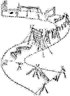 3) Έρπειν: Δημιουργούμε ένα οριζόντιο πλέγμα με σχοινιά, σε μικρό ύψος από το έδαφος, και οι πρόσκοποι προσπαθούν έρποντας να περάσουν από κάτω.