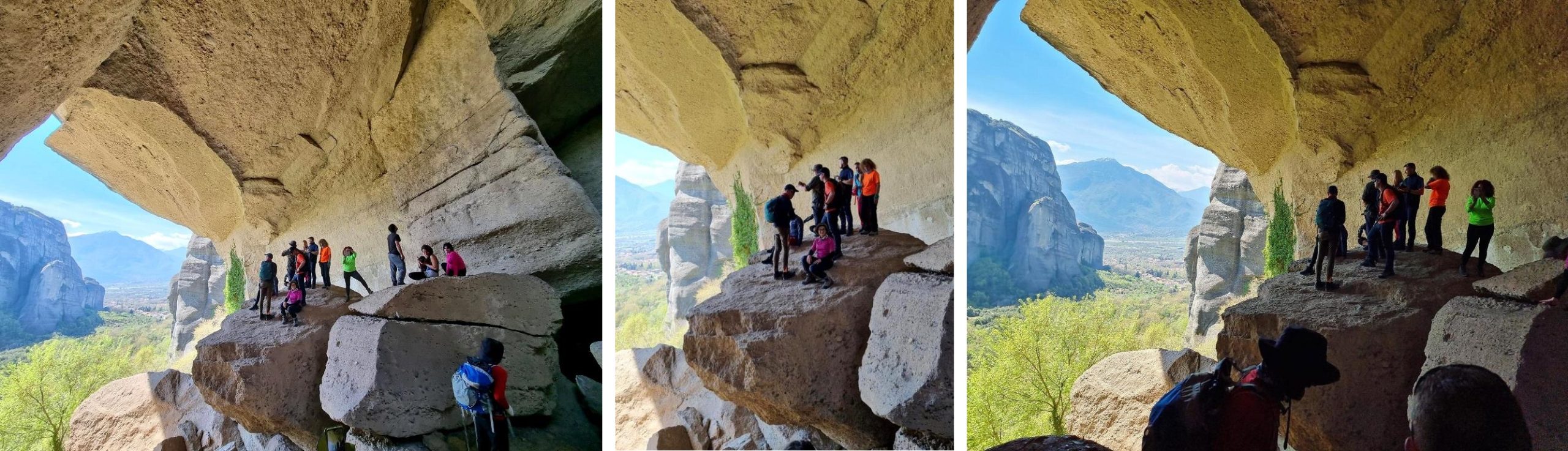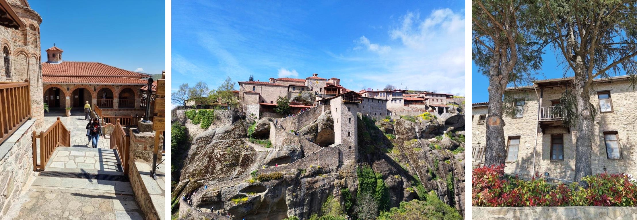 Επιστρέφουμε στο μονοπάτι, το οποίο ανεβαίνει, περνά από θέση με θέα και σε περίπου 45 λεπτά μας βγάζει στο υψηλότερο σημείο της διαδρομής (565 μ.). Αμέσως μετά, φτάνουμε, στο πάρκινγκ της ξακουστής μονής του Μεγάλου Μετεώρου, την οποία και θα επισκεφθούμε.Πληροφορίες : Η Μονή της Μεταμόρφωσης του Σωτήρος, γνωστή και ως Μεγάλο Μετέωρο, είναι ανδρικό μοναστήρι το οποίο βρίσκεται στην κορυφή του υψώματος Πλατύς Λίθος, σε υψόμετρο 534 μ. Είναι το μεγαλύτερο από τα 6 μοναστήρια που εξακολουθούν να είναι ενεργά στα Μετέωρα. Ιδρύθηκε το 14ο αιώνα από τον άγιο Αθανάσιο των Μετεώρων και γνώρισε ιδιαίτερη ακμή στα μέσα του 16ου αιώνα.