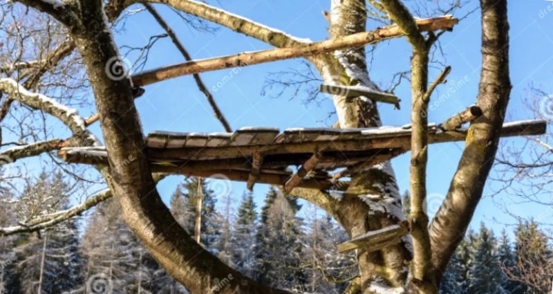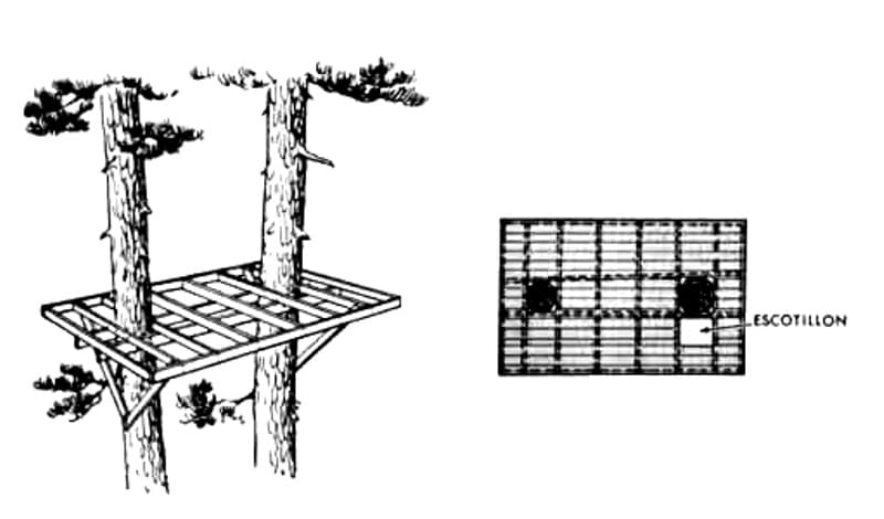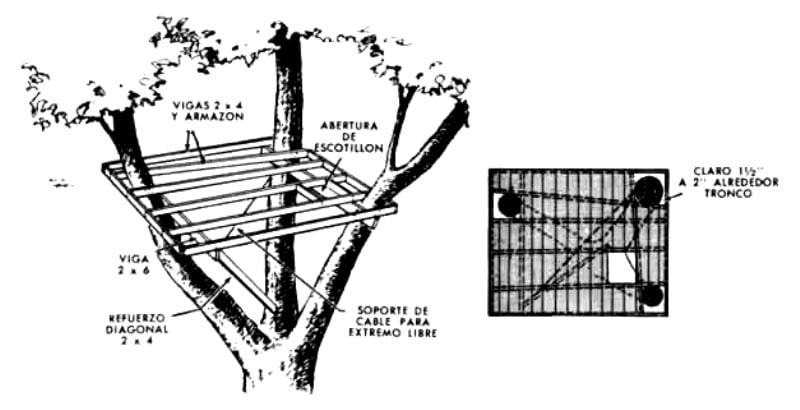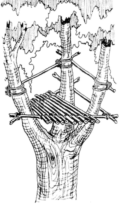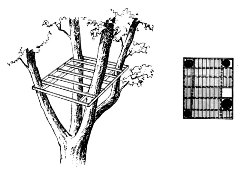 Ένας απλός και συγχρόνως σταθερός τρόπος είναι να κατασκευάσουμε μία πλατφόρμα η οποία στηρίζεται στο δέντρο, συγχρόνως όμως να έχει και δικές της κολώνες στήριξης (βλ. φωτογραφία).