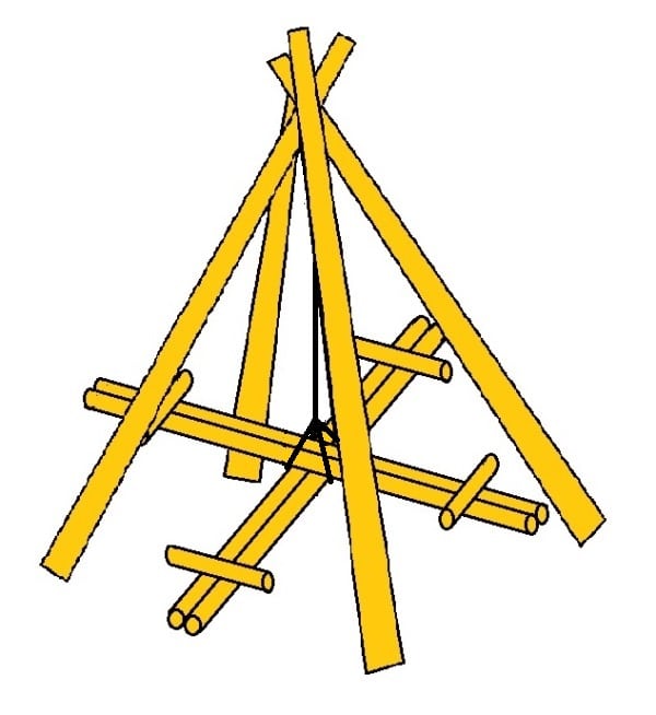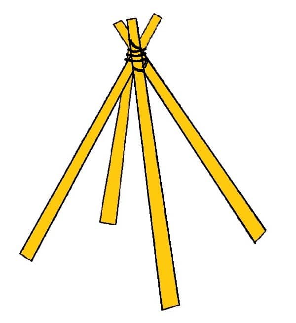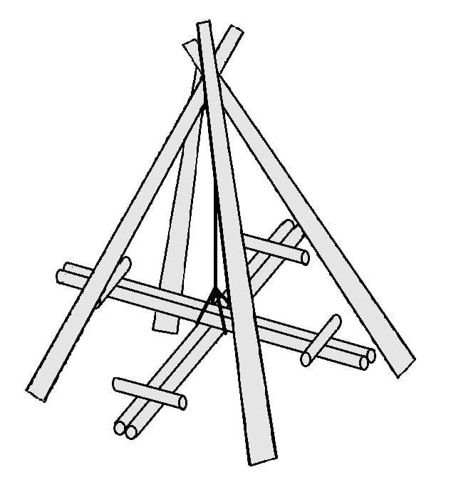 Βήμα 1. Κατασκευάζουμε τo τετράποδο, χρησιμοποιώντας 4 γερά ξύλα x 3 m. Δένουμε τα ξύλα στην κορυφή και ανοίγουμε τα 4 σκέλη, έτσι ώστε οι βάσεις τους να σχηματίζουν τετράγωνο πλευράς 2 m. Σταθεροποιούμε τα σκέλη σε λάκους 30 cm.