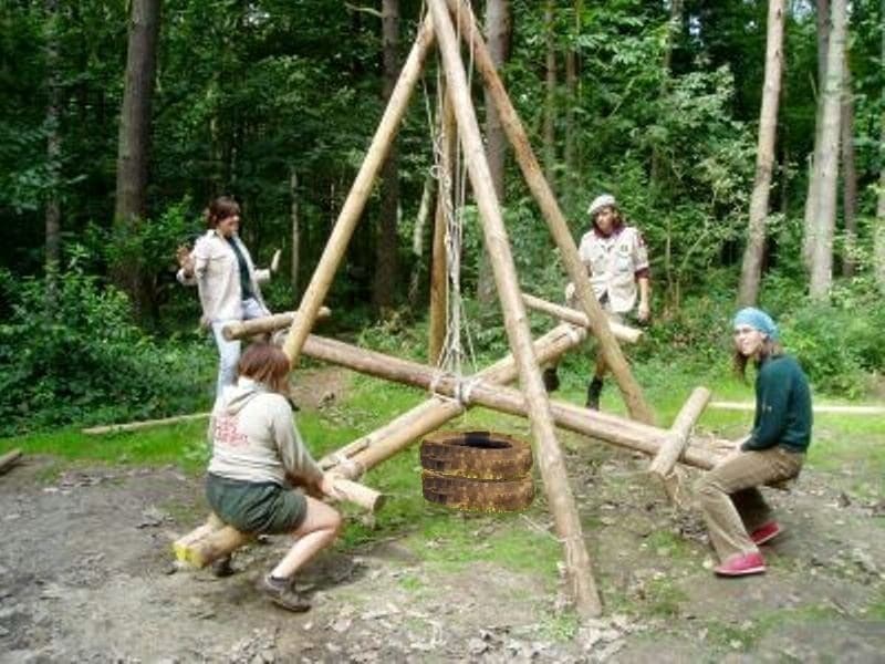 Μία ακόμα διασκεδαστική κατασκευή, η οποία όταν κατασκευαστεί με προσοχή, μπορεί να αντέξει τη συχνή χρήση, ακόμη και από βαρείς αναβάτες. Όπως με κάθε παιχνιδοκατασκευή, πρέπει να ληφθεί μέριμνα για την καλή και ασφαλή χρήση της. Αποτελείται από 1 τετράποδο πλαίσιο και έναν σταυρό, που κρέμεται από την κορυφή του τετραπόδου.